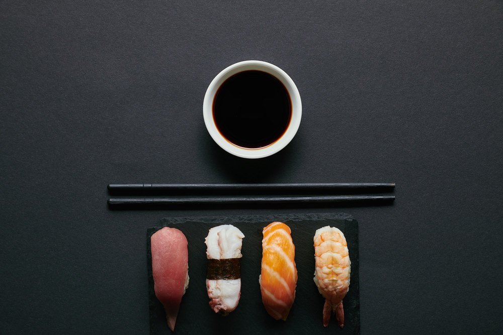8 stuks. 2x Sake nigiri, 2x Maguro nigiri, 2x Avocado nigiri, 2x Ebi nigiri.
